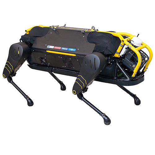 HyQReal is an improved version of HyQ and HyQ2Max, IIT robots that demonstrated a wide repertoire of indoor/outdoor motions ranging from running and jumping to careful walking over rough terrain. for this robot IIT teamed up with MOOG, the world-leader in reliable, high-performance actuation systems for aerospace and motorsport. Besides a complete redesign of the robot, IIT developed control algorithms for intelligent teleoperation. MOOG developed a compact battery-powered hydraulic system to provide HyQReal with power-autonomy. MOOG also further developed their TRL-4 Integrated Servo Actuators (ISA) and brought them onto the market. ISAs are mounted inside the knee joints of HyQReal providing highly reliable and efficient hydraulic actuation. A follow-up project based on the new robot is funded by INAIL, the Italian National Institute for Insurance against Accidents at Work.