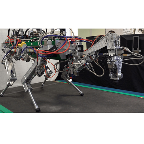 Legged robots with arms can potentially replace humans in dangerous and dirty tasks, where vehicles with wheels and tracks cannot go. Some possible application domains are: disaster recovery (such as cleaning-up the Fukushima nuclear power plant), search and rescue, forestry and construction. Traditionally quadrupeds have been limited to load carrying or observation tasks as they have no manipulation ability.