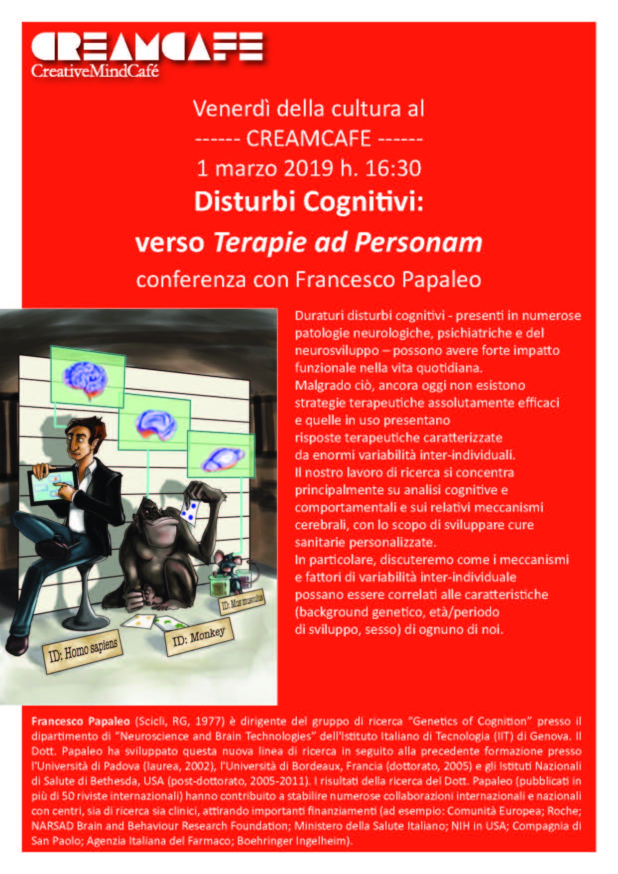 Our aim is to uncover the mechanisms underlying cognitive and social alterations relevant to psychiatric and neurodevelopmental disorders with the final goal of developing biologically-based and personalized therapeutic strategies. We employ cross-disciplinary approaches including detailed in vivo studies in genetically modified mice strictly combined with clinical investigations.