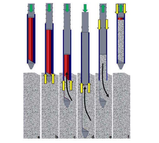 - Arm1 pushes the sampling tool deep in the powder, sensing the resistive force applied to the robot’s motion.