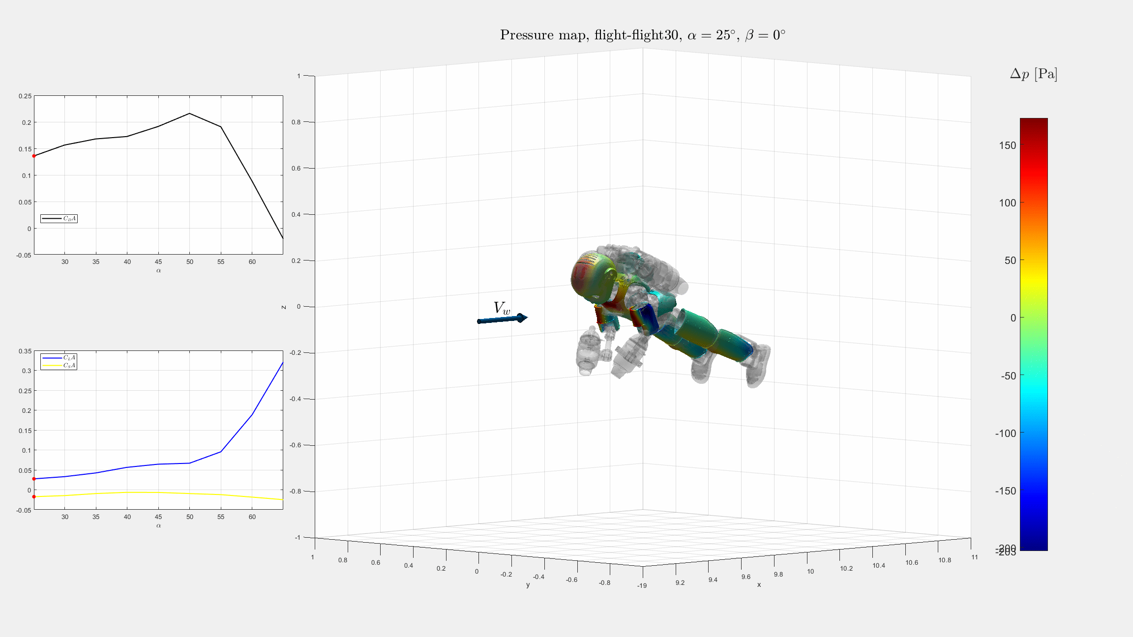 The aerodynamics of a single rigid body is a complex matter. Consequently, dealing with the aerodynamics of a multi-body system - as a flying humanoid robot is - leaves little space for closed-form expressions of the aerodynamic effects, and it is not what we aim to do. So, our approach to evaluating the aerodynamic effects on the flying humanoid robot is to perform CFD simulations using Ansys Fluent and then extract a simplified model to use in the control design.