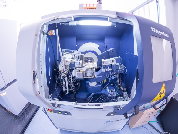 A Rigaku Smartlab, with a 9kW Cu Ka rotating anode and five-axis high-resolution goniometer is used for advanced X-ray diffraction measurements on a wide range of materials. Many accessories (doomed high-temperature stage, capillary rotation attachment, XYZ automatic stage, D/teX Ultra SSD linear detector, and battery cell attachment) are available for a large variety of measurements (e.g. non-ambient conditions and in-situ electrochemical analysis). Additionally, a PANalytical Empyrean system equipped with universal PreFIX optics, Pixcel3D2x2 area detector, and programmable XYZ platform, is available for routine measurements.